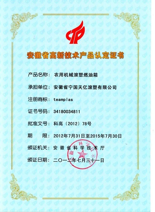 Anhui Province High tech Product Certification
